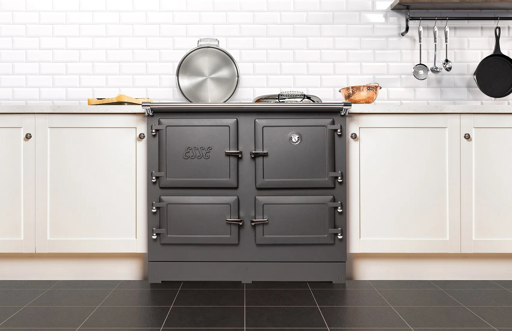 Der ESSE 600 T kombiniert traditionelles Design mit moderner Elektrotechnik – ideal für kleinere Küchen oder als Zusatzgerät im gehobenen Küchenumfeld. Zwei unabhängig regelbare Öfen und eine Grillfunktion machen ihn zu einem leistungsstarken Alltagsbegleiter mit reduziertem Look.