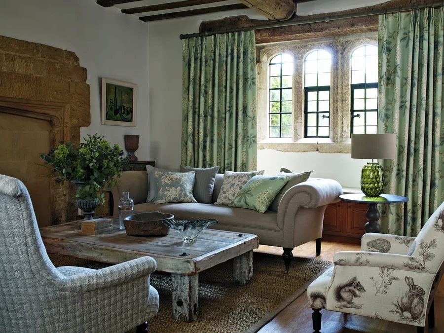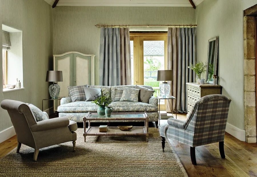 Wir gestalten Wohnzimmer – mit ausgewählten Stoffen, bequemen Sofas, maßgefertigten Möbeln und harmonischen Farbkonzepten für britisches Wohngefühl.